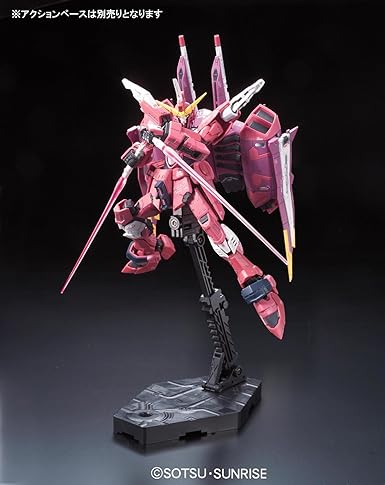 The latest Real Grade (RG) features the ruby red Gundam from the second half of Gundam Seed. Utilizing the Advanced MS Joint, this 1/144 scale kit features extensive detail and possability found typically in the higher end MG and PG (perfect grade) product lines. The Fantum-00, the trade mark giant backpack, can detach from the Justice and for the first time ever allow the Justice to ride on top of it thanks to foot clips. All weapons including the shoulder mounted beam boomerangs, beam rifle, beam sabers and movable turrets on the Fantum-00 are faithfully recreated with unprecedented detail. Also, included are hand parts to pair with RG Freedom Gundam to recreate a tender scene from the anime. Runner x11, decal sheet x1, instruction manual x1 included.