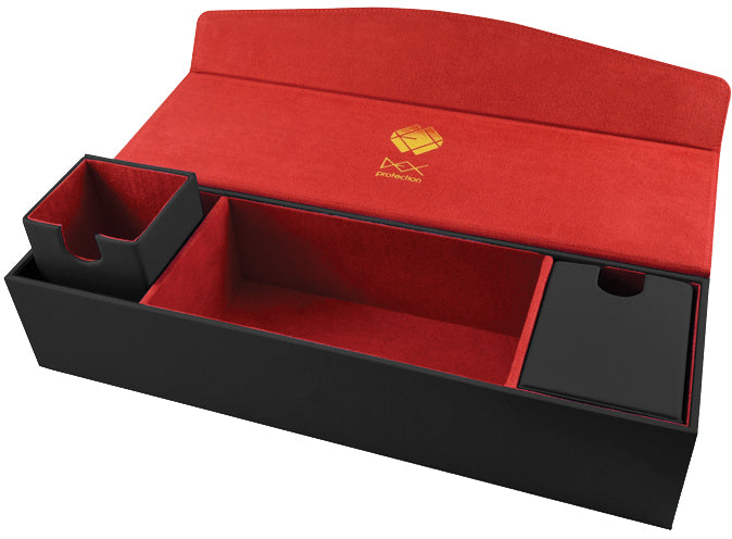 The Game Chest from Dex Protection is a unique way to conveniently and stylishly personalize how you store your games and collections. The Game Chest utilizes two conveniently located and fully removable trays in which to store tokens, dice, and other accessories or 100+double-sleeved cards. A main compartment provides players ample space for additional cards, accessories, and game components or 300+ double (360 single) sleeved cards. Additionally, the interior of The Game Chest is lavishly lined with a real suede interior. Each Game Chest utilizes an innovative exterior material which provides a stylish matte finish without sacrificing durability or protection. 14 extra strength magnets provide an insane closure to hold components securely in place. The Game Chest is a perfect storage solution for many CCGs, LCGs, and board games.
